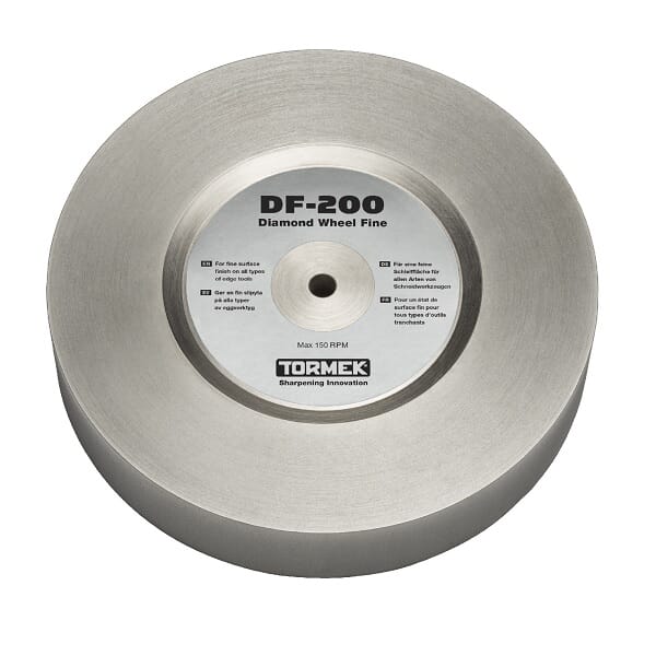 Fin diamantskive er all-round skiven som egner seg godt til å sette opp kniver, dreiejern, treskjærerjern m.m. Den sliper raskt men fint, med korning 600. Du kan slipe alle typer stål, inklusive hardmetall, keramikk og glass. Leveres med 1 flaske a 150ml anti-rust tilsetning, som blandes i vannet ca 10 ml til 250ml (ca 4%). Dette hindrer rustdannelse som skyldes partikler fra verktøyet som slipes, selve skiven ruster ikke. Skiven er ø200mm og passer til T4, T3 og eldre maskiner med 200mm steiner. Det anbefales å bruke vann ved sliping.