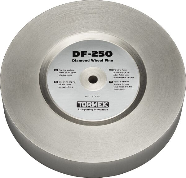 Fin diamantskive er all-round skiven som egner seg godt til å sette opp kniver, dreiejern, treskjærerjern m.m. Den sliper raskt men fint, med korning 600. Du kan slipe alle typer stål, inklusive hardmetall, keramikk og glass. Leveres med 1 flaske a 150ml anti-rust tilsetning, som blandes i vannet ca 10 ml til 250ml (ca 4%). Dette hindrer rustdannelse som skyldes partikler fra verktøyet som slipes, selve skiven ruster ikke. Skiven er ø250mm og passer til T8, T7 og eldre maskiner med 250mm steiner. Det anbefales å bruke vann ved sliping.